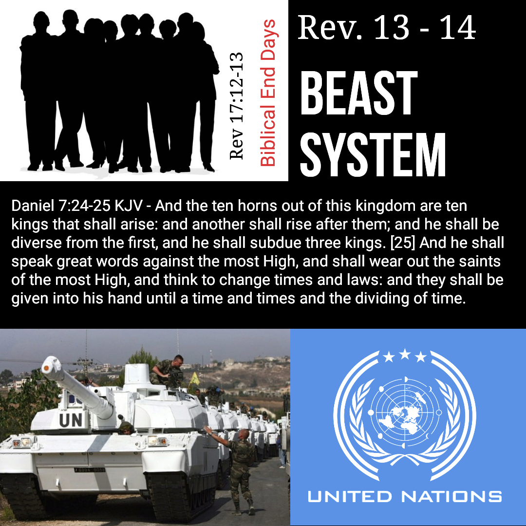 - Daniel 7:23-27 KJV - Thus he said, The fourth beast shall be the fourth kingdom upon earth, which shall be diverse from all kingdoms, and shall devour the whole earth, and shall tread it down, and break it in pieces. [24] And the ten horns out of this kingdom are ten kings that shall arise: and another shall rise after them; and he shall be diverse from the first, and he shall subdue three kings. [25] And he shall speak great words against the most High, and shall wear out the saints of the most High, and think to change times and laws: and they shall be given into his hand until a time (one year) and times (two years) and the dividing of time (half a year). [26] But the judgment shall sit, and they shall take away his dominion, to consume and to destroy it unto the end. [27] And the kingdom and dominion, and the greatness of the kingdom under the whole heaven, shall be given to the people of the saints of the most High, whose kingdom is an everlasting kingdom, and all dominions shall serve and obey him.